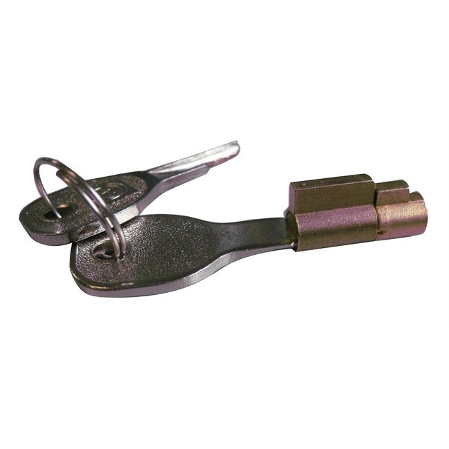 Antidiefstal systeem met sleutel op handvat voor koppelingskop type WINTERHOFF. Is geschikt voor aanhangwagens NORAUTO die uitgerust zijn met een WINTERHOFF koppelingskop.